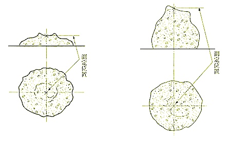 なお、コンクリートがスランプコーンの中心軸に対して偏ったり、くずれたりして、形が不均衡になった場合は、別の試料によって再試験する。