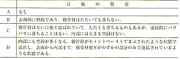 (i) コンクリートに生じた豆板の程度は 表6.9.4 を参考にして分類する。