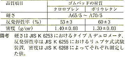 注(1) ゴムパッドの硬さの測定には、オイルダンパを利用した定荷重装置を用いると安定した試験値が得られる。