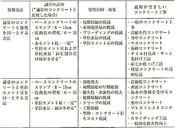 遅延形は流動化効果と凝結遅延効果を併せもつものであり、添加量によって流動化の程度と凝結遅延性が同時に変化するので、所定の凝結遅延性を得るためには、ベースコンクリートには遅延形のAE減水剤を用い、流動化剤は標準形とするのが望ましい。